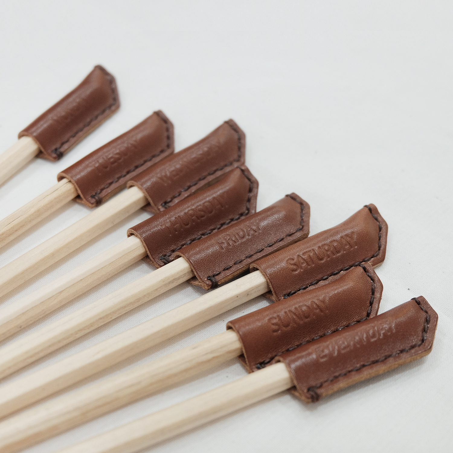 ปลอกหุ้มหัวดินสอจากหนังวัวฟอกฝาด แฮนด์เมด แสตมป์ด้วยชื่อวัน จันทร์-อาทิตย์ & ทุกวัน ให้พร้อมดินสอไม้ HB