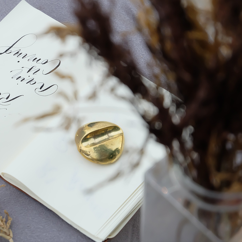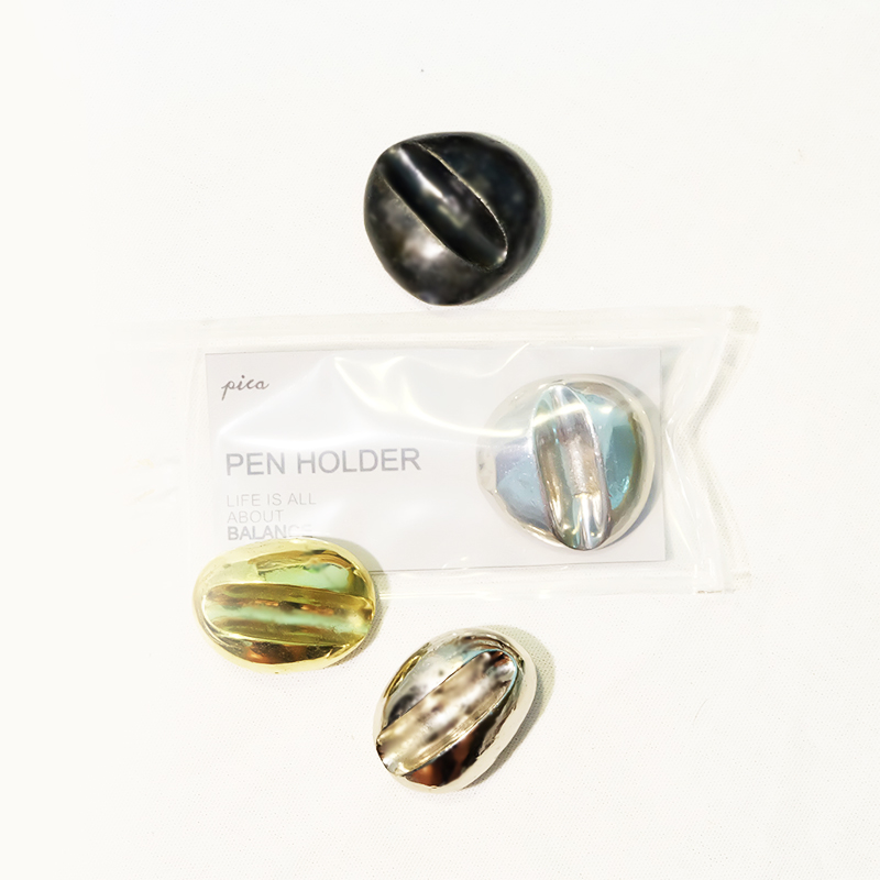 ที่วางปากกาจากแนวความคิดจากความสงบ จึงใช้รูปทรงจากก้อนหินขึ้นรูปด้วยทองเหลืองทั้งก้อน เพื่อให้ได้น้ำหนักและสร้างคุณค่า