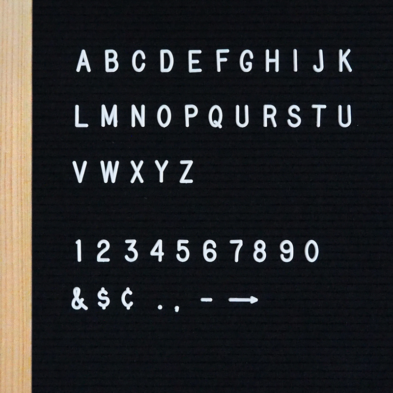 มาพร้อมกับตัวอักษร และตัวเลขสีขาวขนาด ¾ นิ้ว จำนวน 290 ตัว